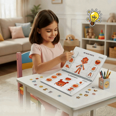 Human Body Busy Book is designed for kids aged 3+ years, with activities tailored to their developmental needs.