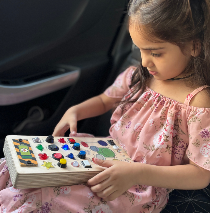 Designed with varied textures, colors, and controls to enhance sensory learning.