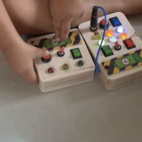 Interactive switches trigger glowing lights, making learning fun and stimulating.