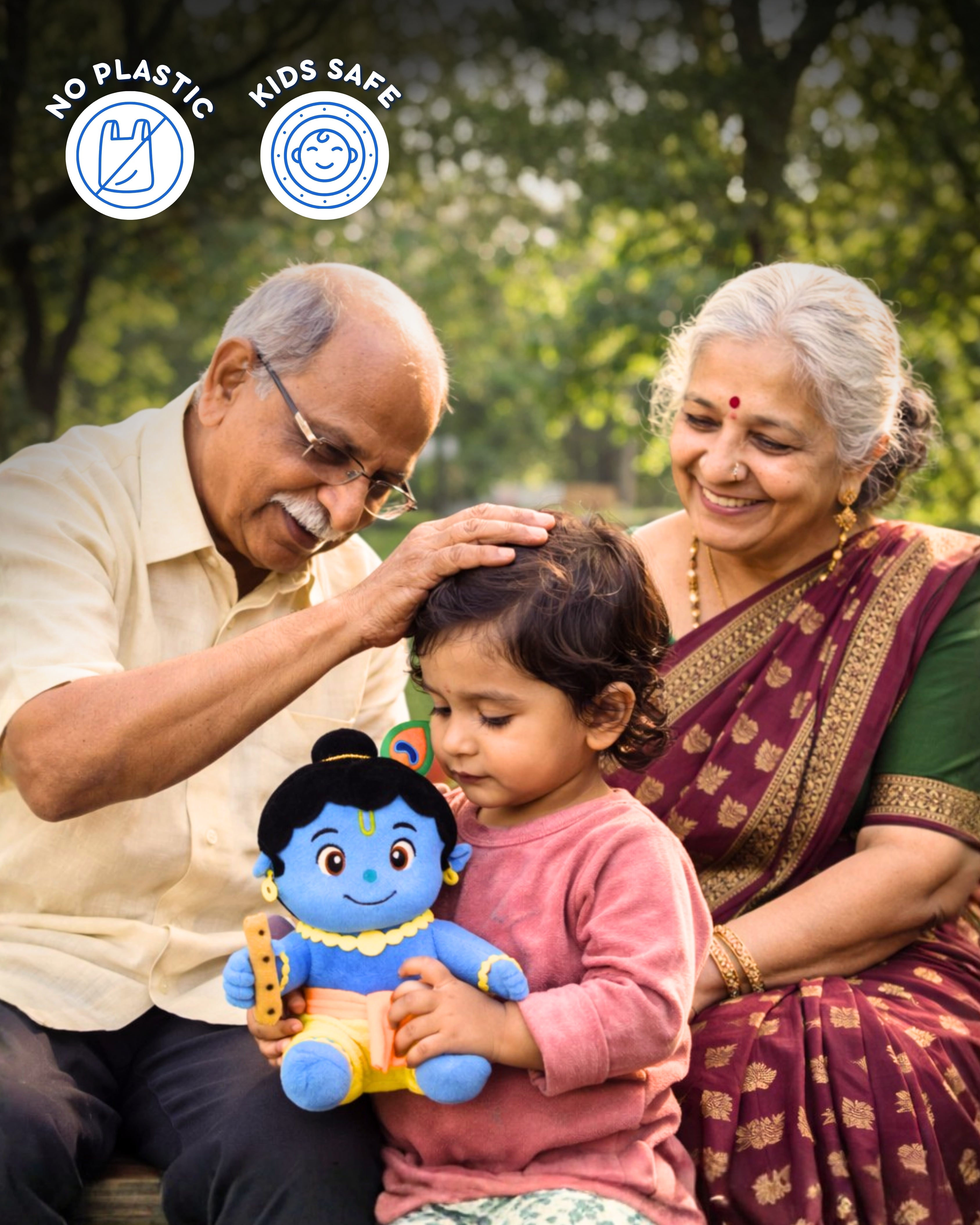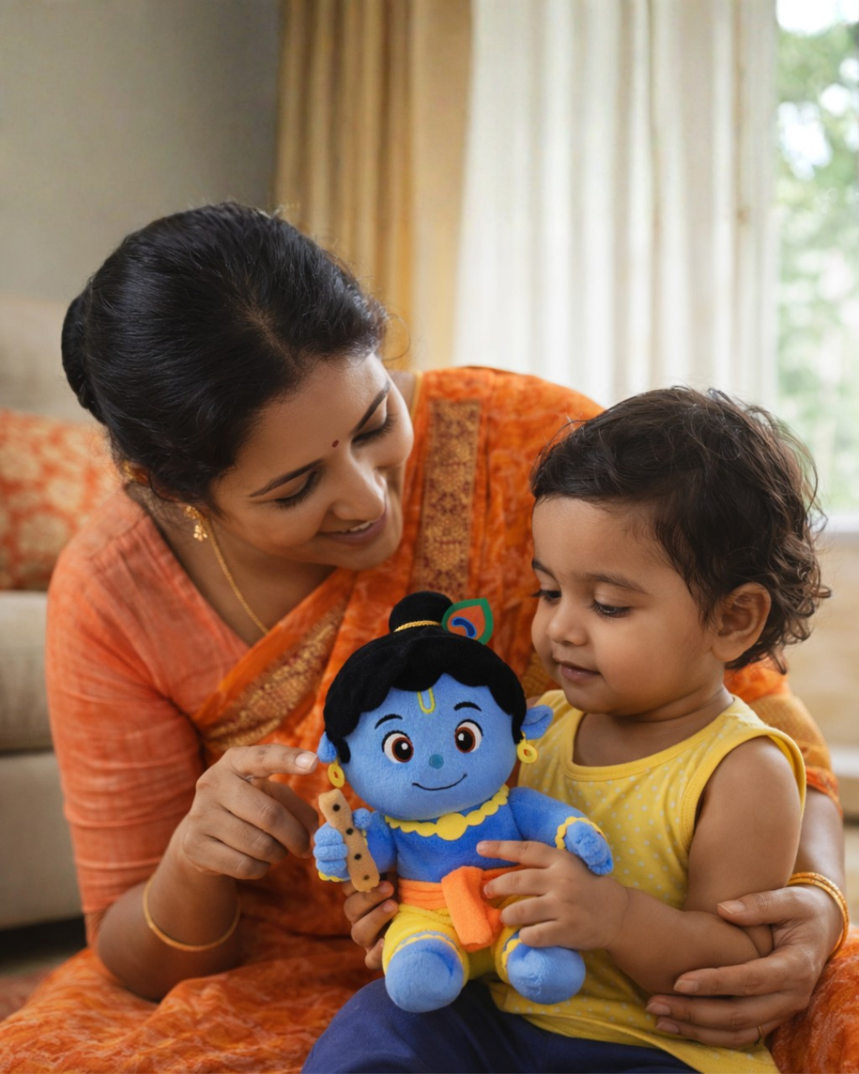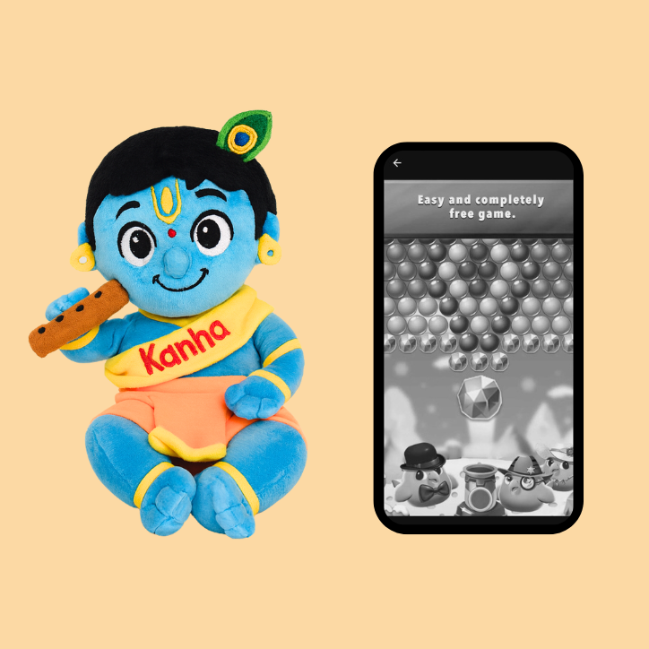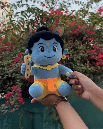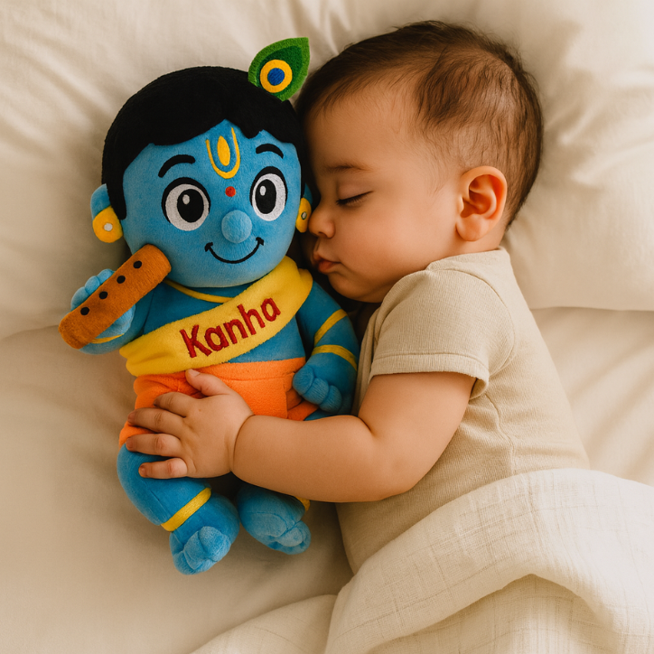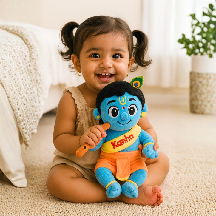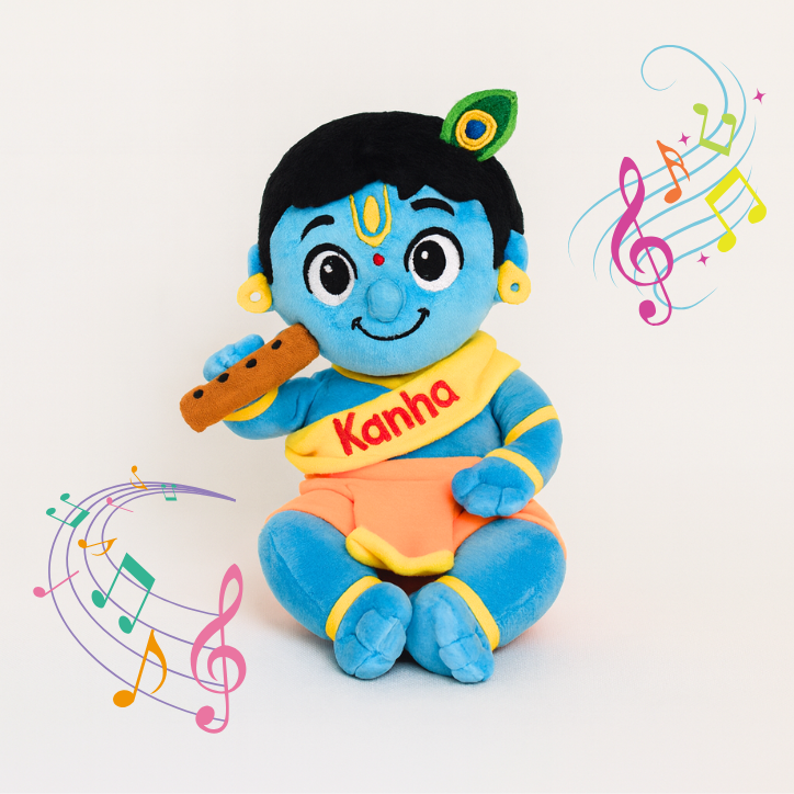 It’s a soft, screen-free devotional toy that chants Krishna mantras — blending play with bhakti.
