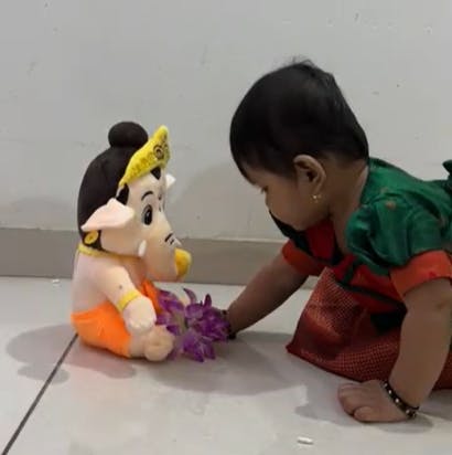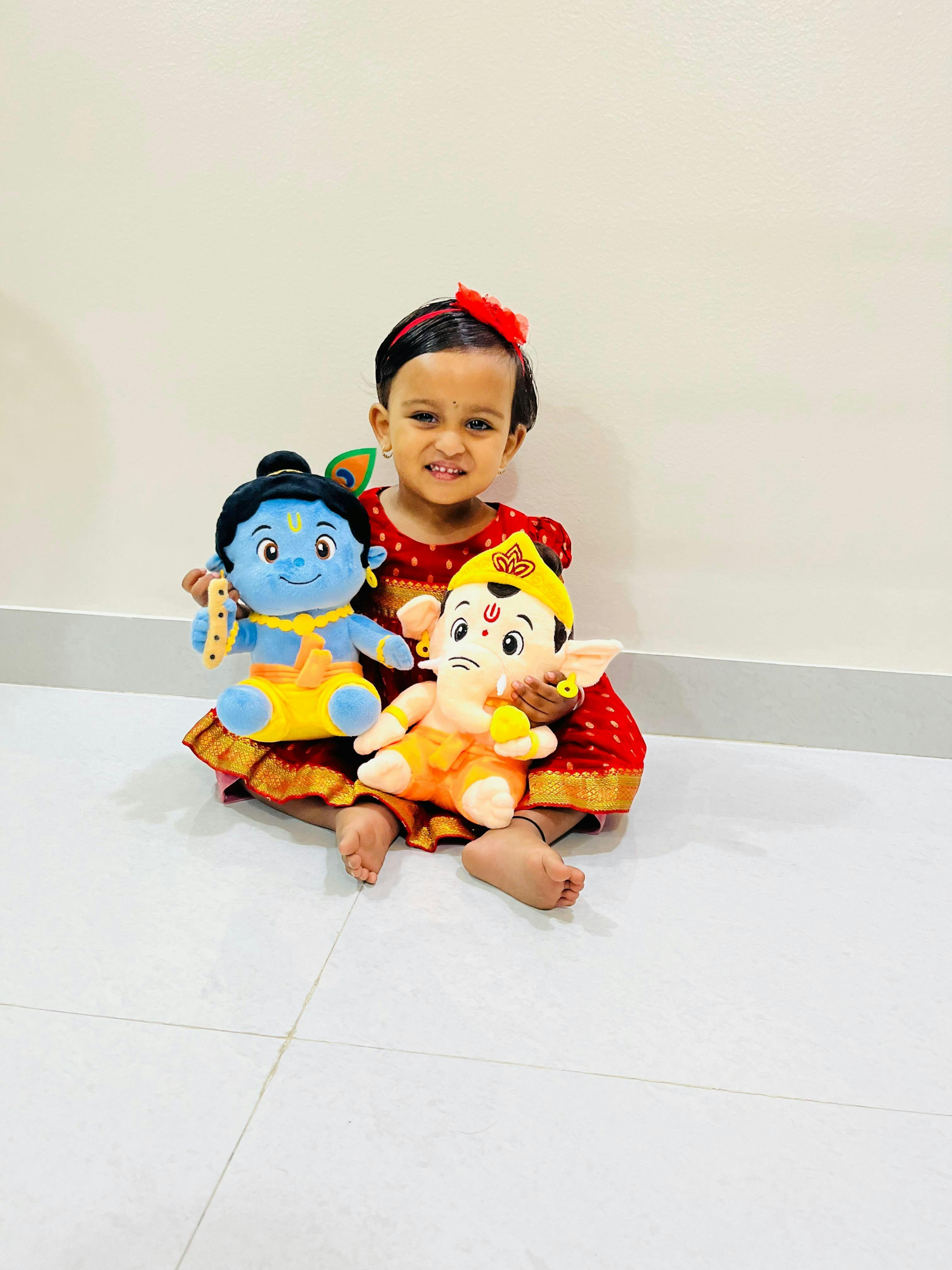 It’s a soft, screen-free devotional toy that chants Ganesha mantras — blending play with bhakti.