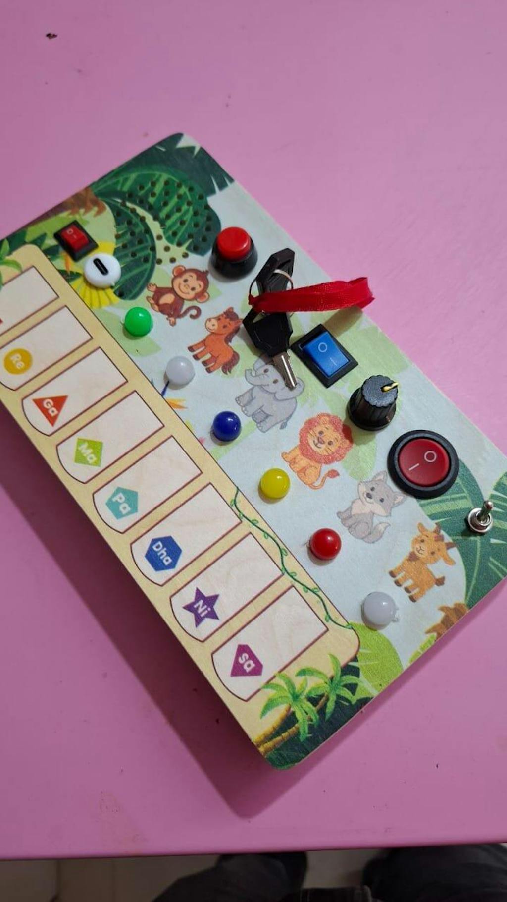 Combines lights, sounds, shapes, and switches for engaging, screen-free learning..